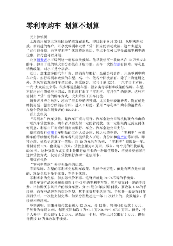 零利率購車 劃算不劃算(26.64KB)